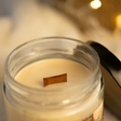 Аромасвічка об'ємом з потріскуючим дерев'яним гнотиком.