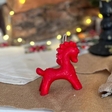 Свічка у формі КОНИКА — яскравий символ цього року, а також фігурка, що нагадує давні глиняні іграшки-обереги. Виготовлена вручну з натурального бджолиного воску, вона поєднує традицію й тепло. Ідеальна для святкового декору або як оберіг на будь-якому шляху.